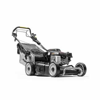 The 46 SP has the same 46cm (18″) Steel cutter deck with 3 in 1 function for collection, rear discharge, and mulching. Powered by the WEIBANG X140 engine (139cc) with primer and featuring single speed self drive, the 46 SP also has a central height of cut lever (20-70mm) and a 55L grass collector with airflow fabric.
